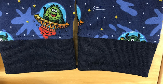 I've already used (and reviewed) the free Movie Night Pyjamas pattern from Sew a Little Seam. So I shan't write a detailed description on the latest set, you can read my full review here. So this post will mainly just be some further pictures of making a set of these knit pyjamas, this time, size 8 for Rose's 6th birthday.
